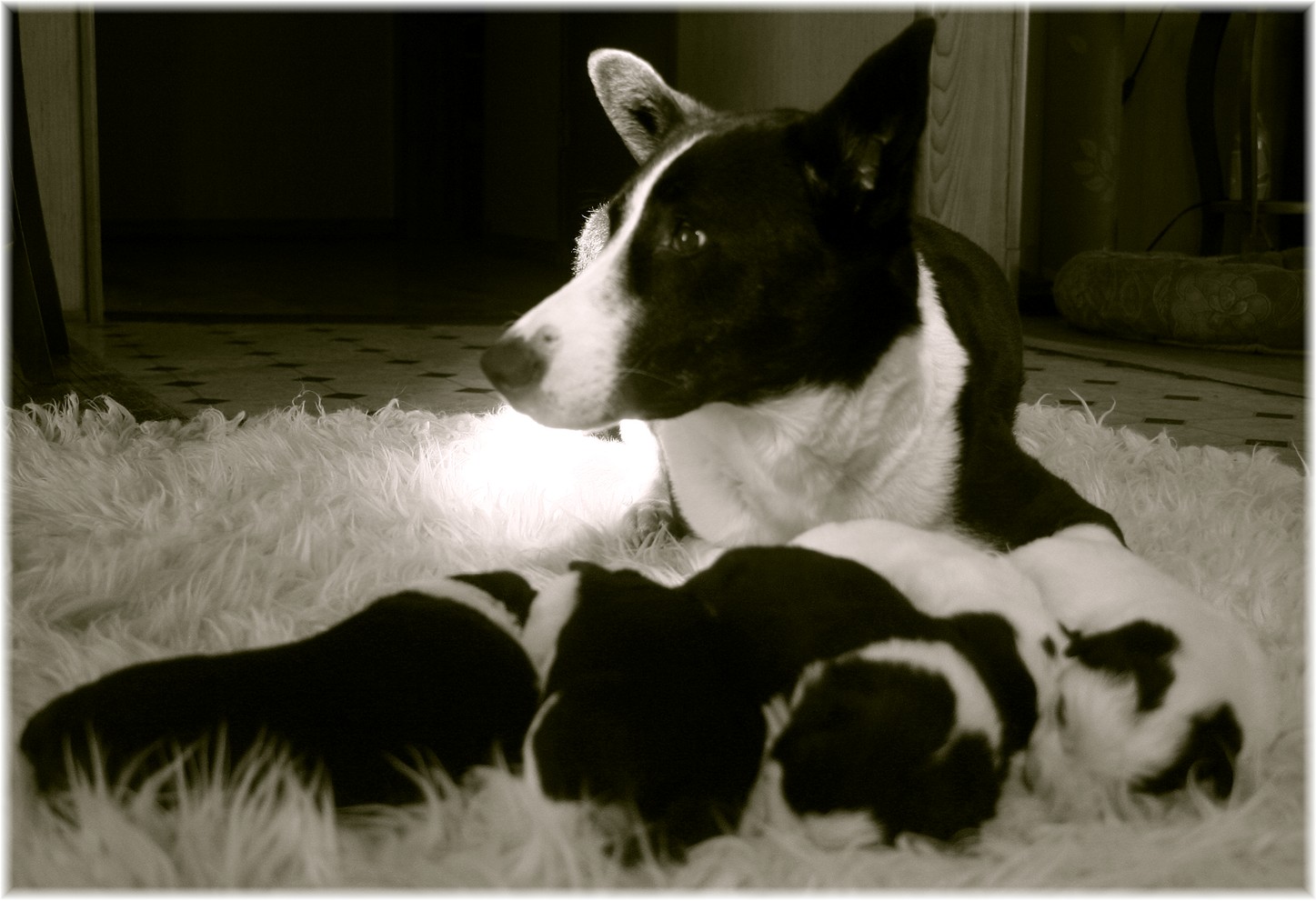 Ash and Rook's lively "lucky charms" are now 11 days old. The biggest change is the appearance of their "peepers". Puppies are born with no sight. Around days 7 to 10 their eyes begin to open. All puppies are born with blue eyes and darken to brown as they mature.